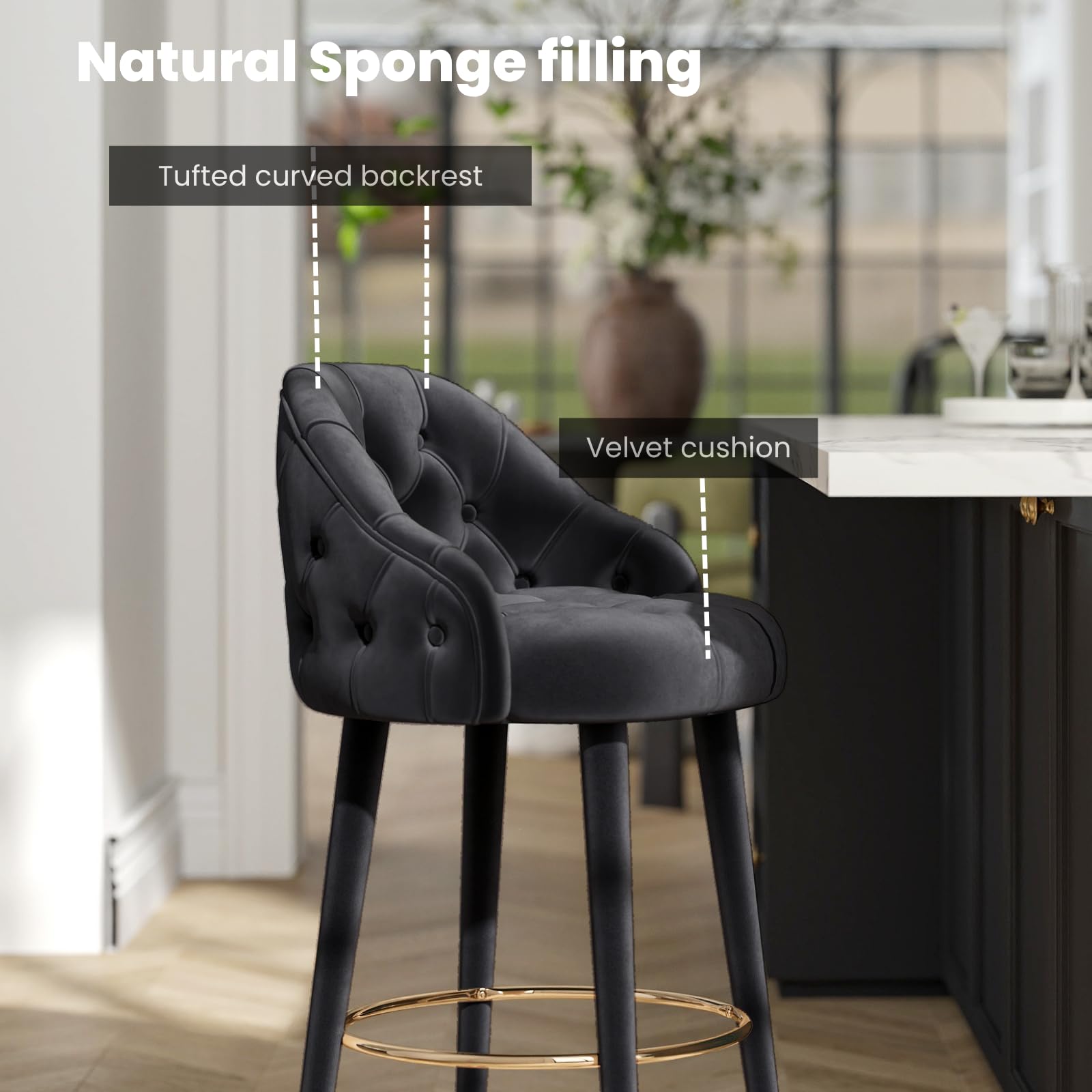 - Deep & Thick Seats: The measurement of the kitchen bar stool seat is 17.25"D x 16.5"W, with a 4" thick cushion filled with natural sponge, velvet upholstered and decorated with button tufting, which is both beautiful and comfortable