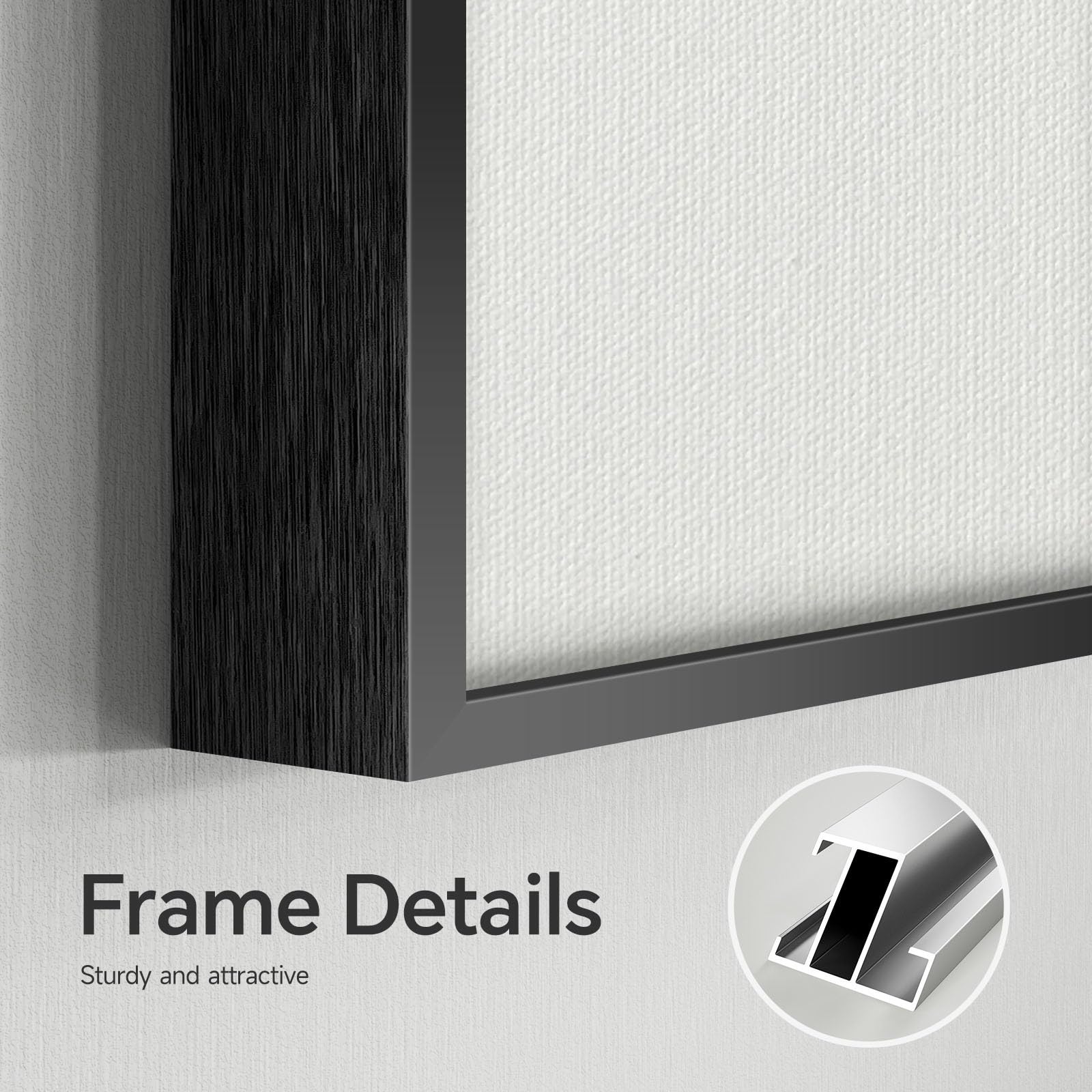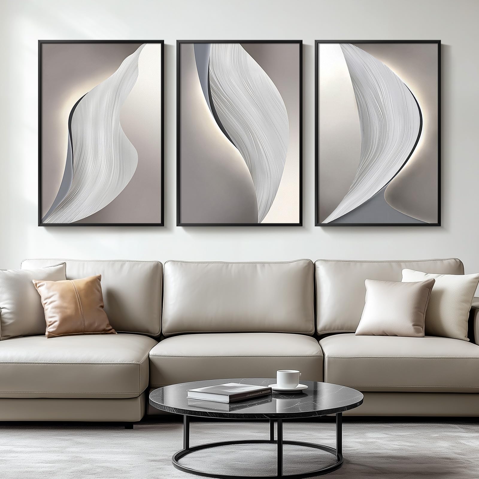 - A set of 3 wall art pieces in black, white, and gray, each piece measuring 24x36 inches, totaling 36" H x 72" W. These artworks are made of solid frame, and the simple black frame can blend with more decorative styles.