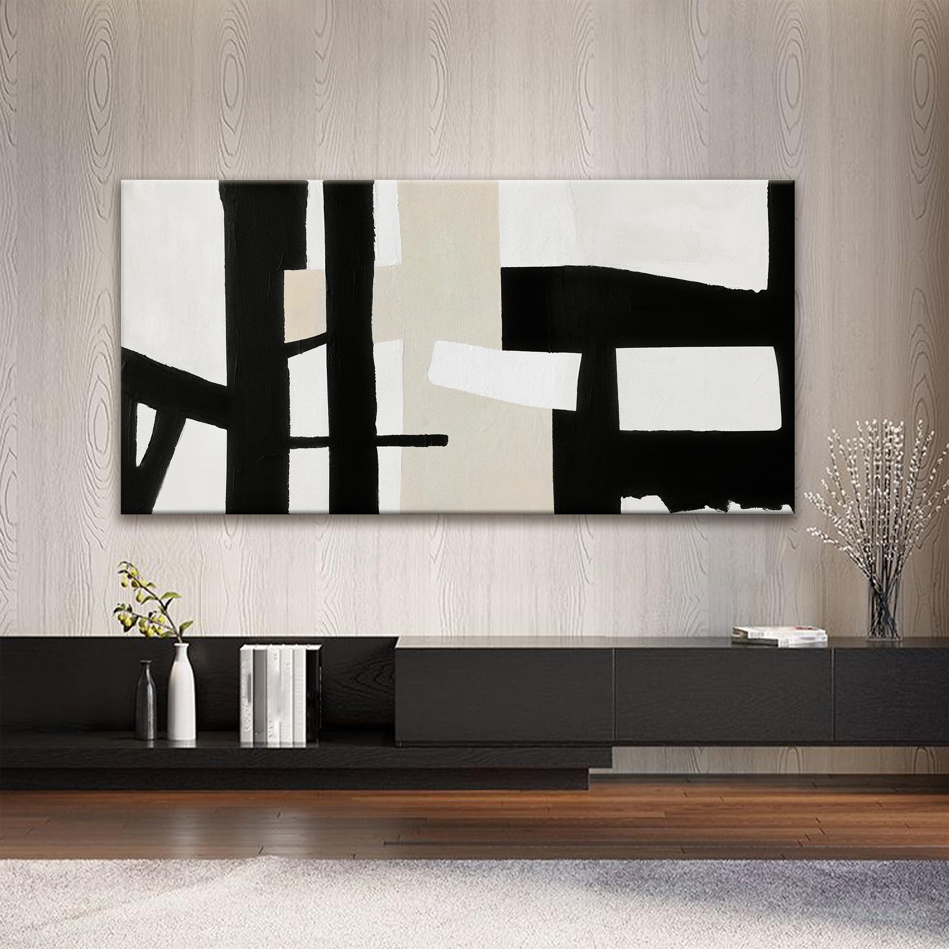 Black and White Abstract, Canvas Wall Art 29" x 58"