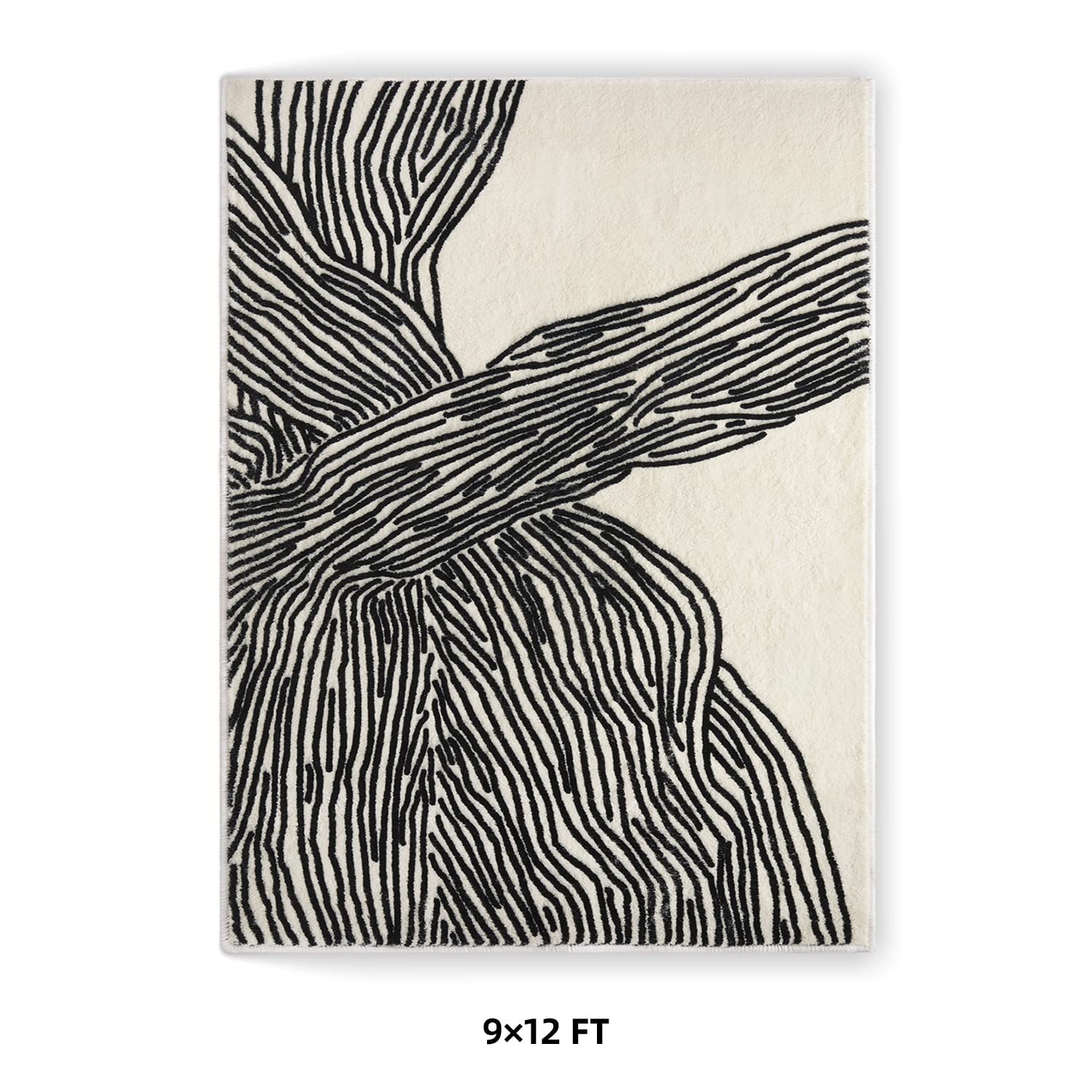 Soft Faux Wool, Contemporary Striped Rug-Black and White